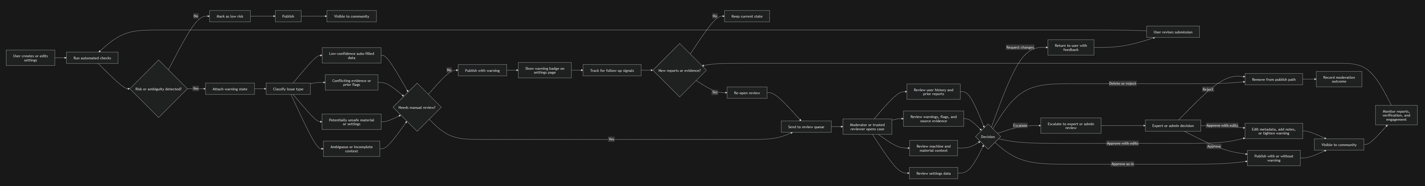 Support warnings, review, and moderation where the risks are too high for passive publishing.