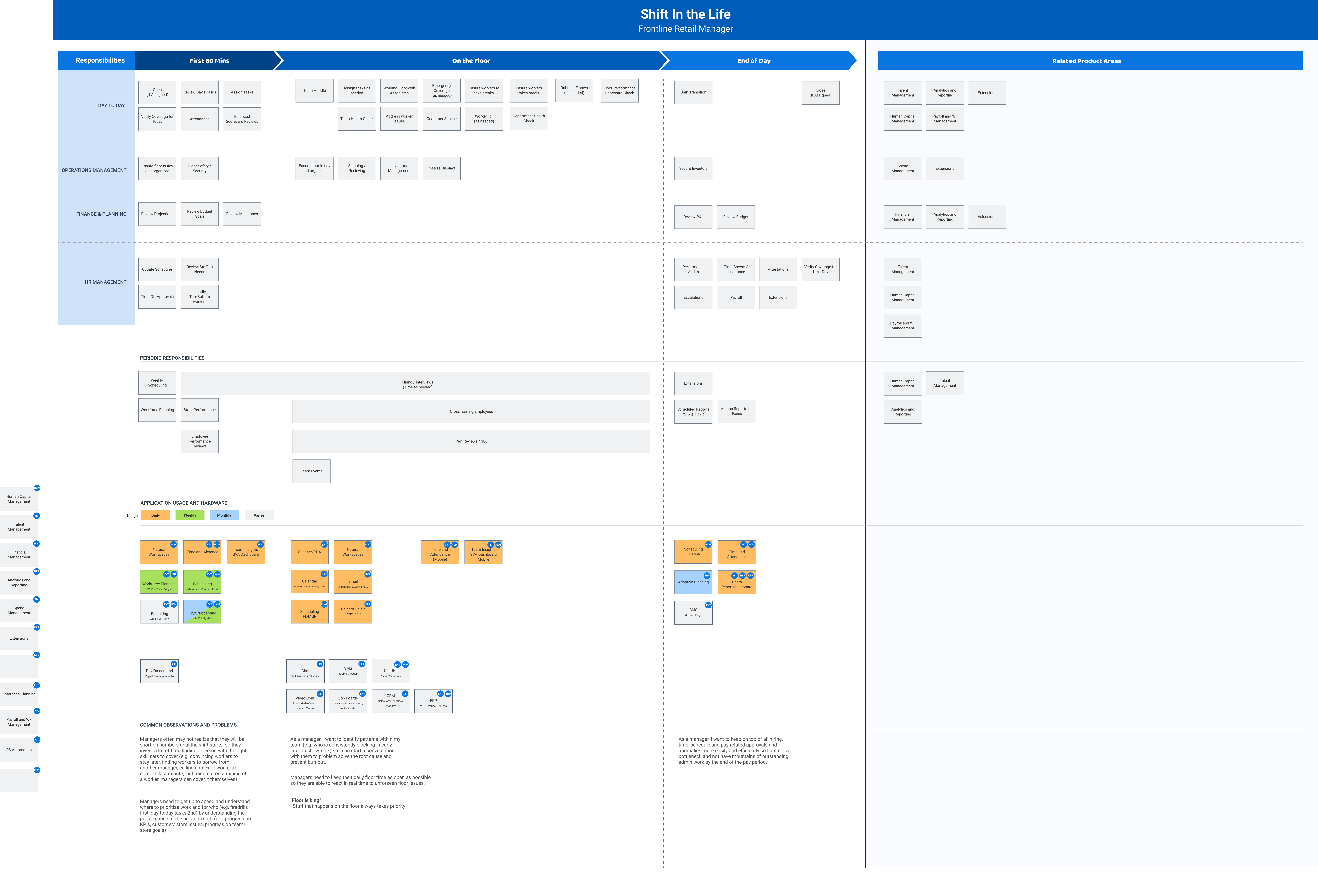 The program involved frontline managers, HR, time administrators, top customers and early adopters across retail, hospitality, food service, and manufacturing. What mattered most was not just what tasks existed, but how fragmented the manager's workday already was.
